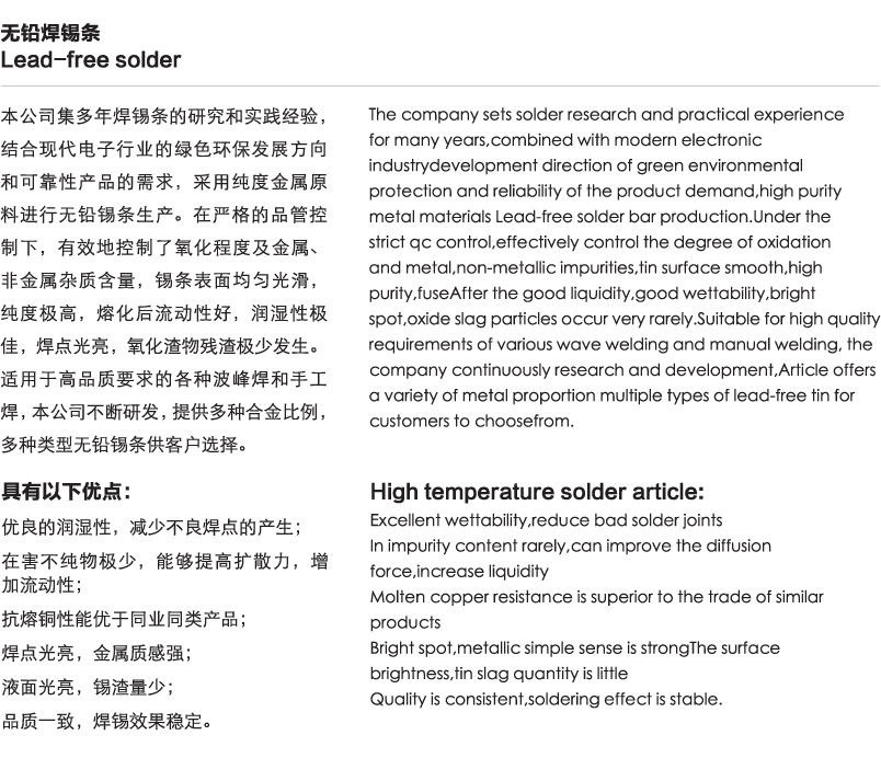 產品詳情>> 無鉛焊錫條